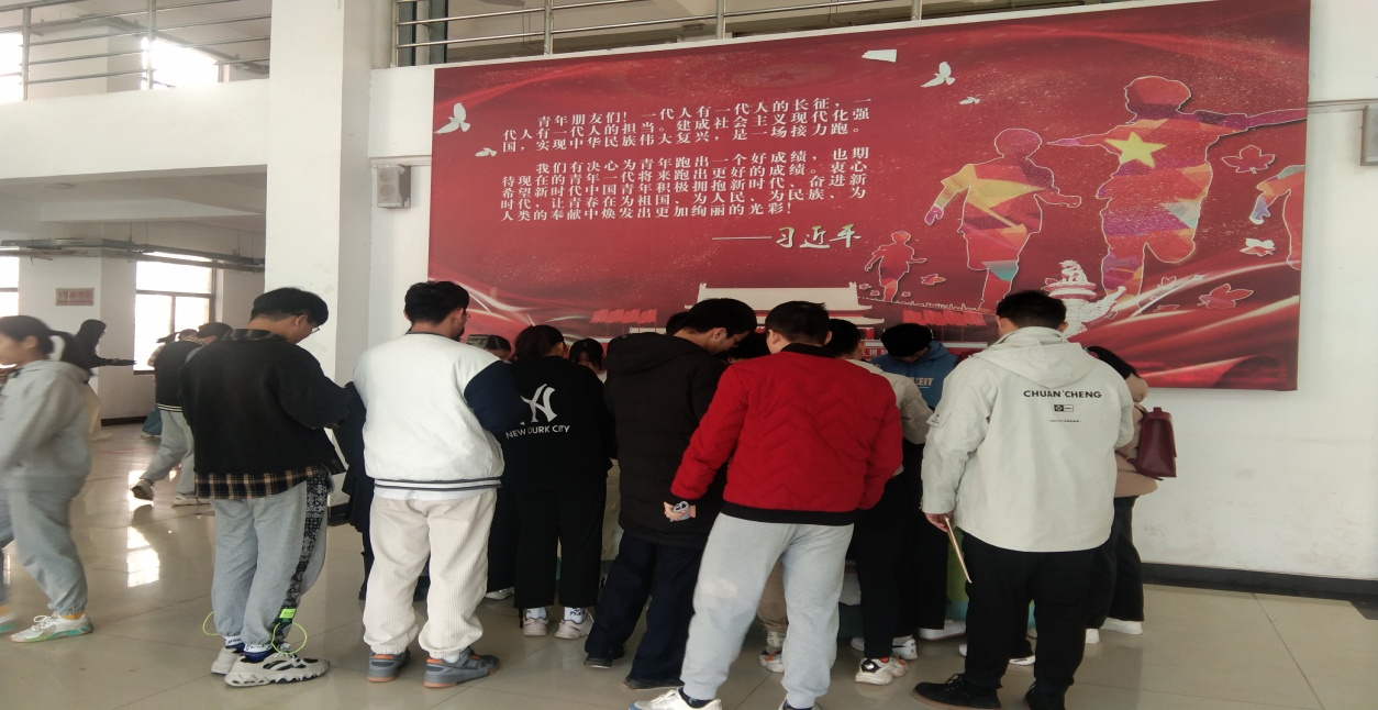 工作人员给为到场的同学们提供签字笔,每个人都在签字板上留下了自己的名字,并根据工作人员提供的二维码扫码进群,为后续相关工作的开展做好充分准备。随着人群的不断涌入,原本空白的签字板上很快便被名字填满,大家都积极主动地参与到关于十九届六中全会的签字活动中,此活动现状更是从侧面反映出了beat365英国官方网站的学子们对我们党召开本次大会的关心与学习十九届六中全会重要精神的决心。