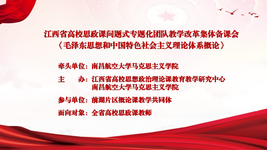 5月8日下午,南昌航空大学马克思主义学院组织省内高校思政课教师开展线上集体备课,备课主题为《毛泽东思想和中国特色社会主义理论体系概论》课“问题式专题化”教学展示。