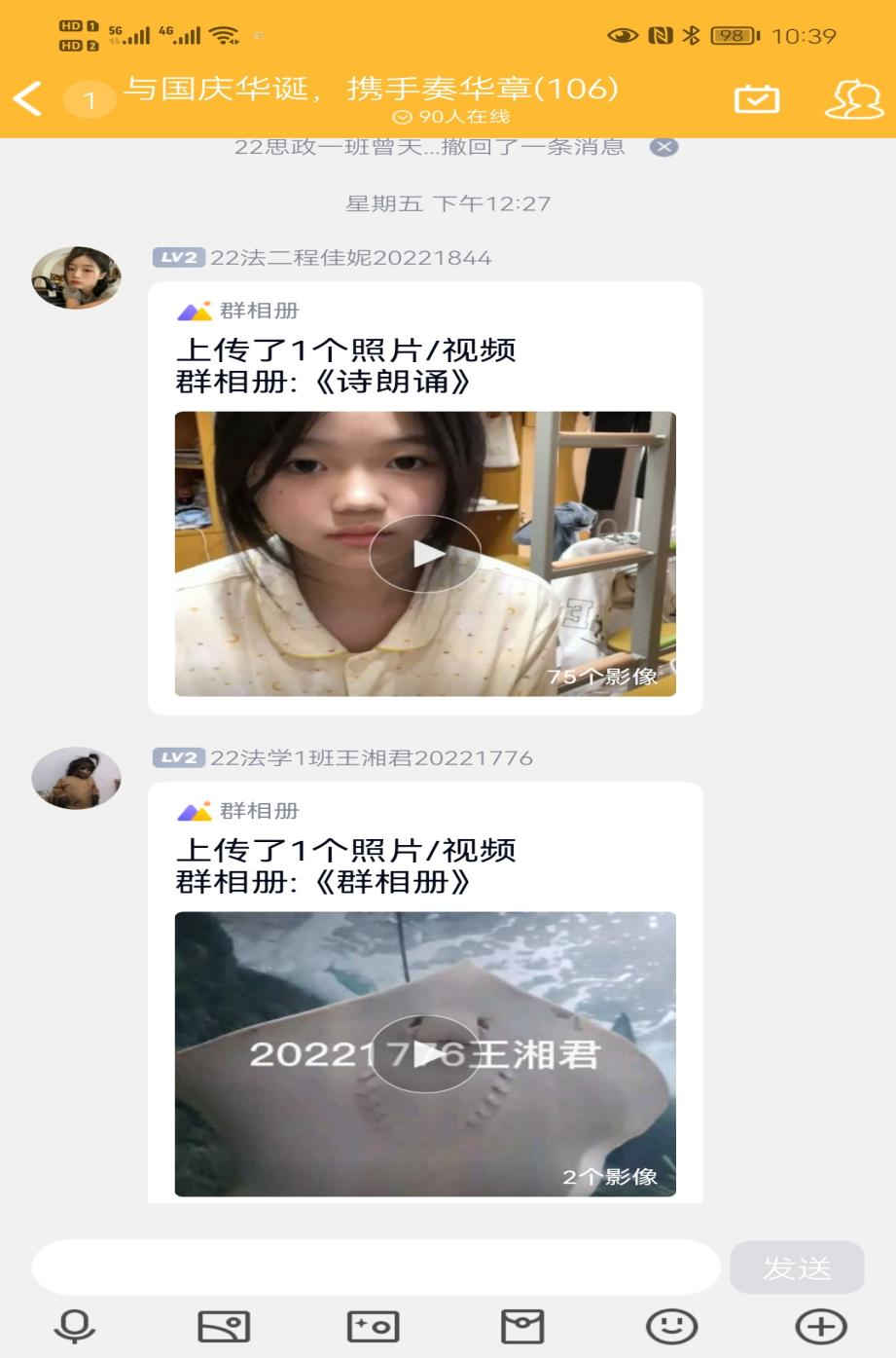 随后在9月30日,beat365举办线上“与国庆华诞,携手奏华章”国庆祝福活动,以为祖国唱一首赞歌和运用诗朗诵的方式来进行。活动期间,学生们热情高涨,学生会工作人员收集到同学们纷纷发来的祝福视频。大家能够在诗词和歌曲的维度中体会祖国的繁荣昌盛和一路走来的艰辛。