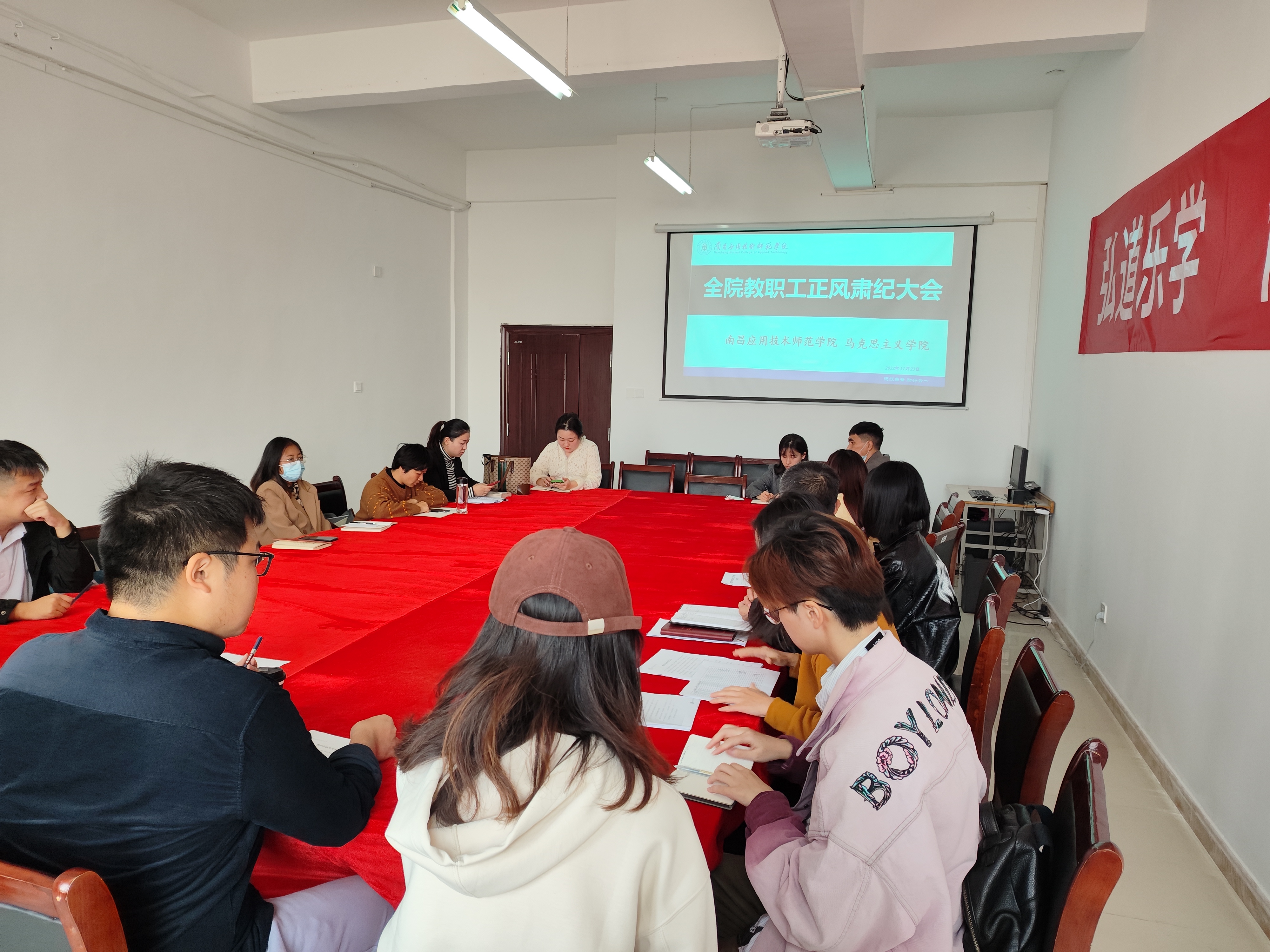 为进一步规范学院教职工的教学教学行为,加强教职工队伍的师德师风建设,按照学校对师德主题教育活动要求,马克思主义学院在11月23日周三下午1点30分在1508会议室开展了全院教职工正风肃纪主题活动,活动由副院长卢林保主持。