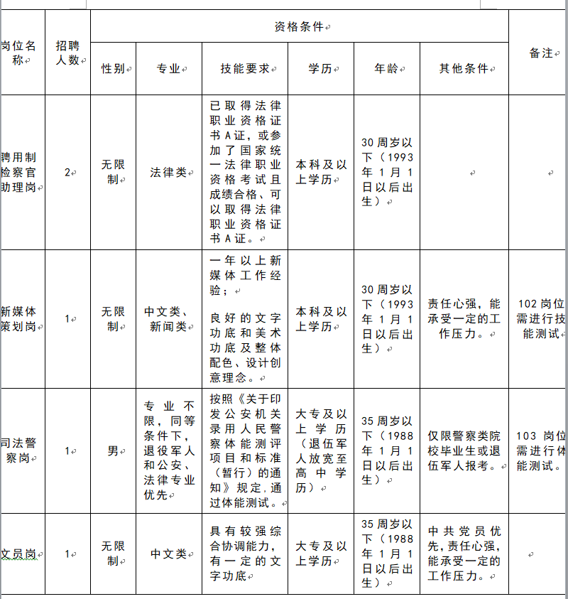 3.品行端正,工作责任心强,能保守工作秘密,服从组织安排,自愿从事检察院相关工作;