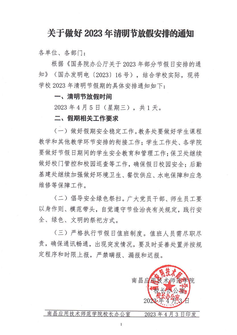 教学管理 学院新闻 学院公告 学院相册 您现在的位置是:首页 > 教学管理 > 学院公告 关于做好 2023 年清明节放假安排的通知 管理员2023-04-041173 上一篇 关于将朱子健等13位同志进行入党积极分子备案的报告