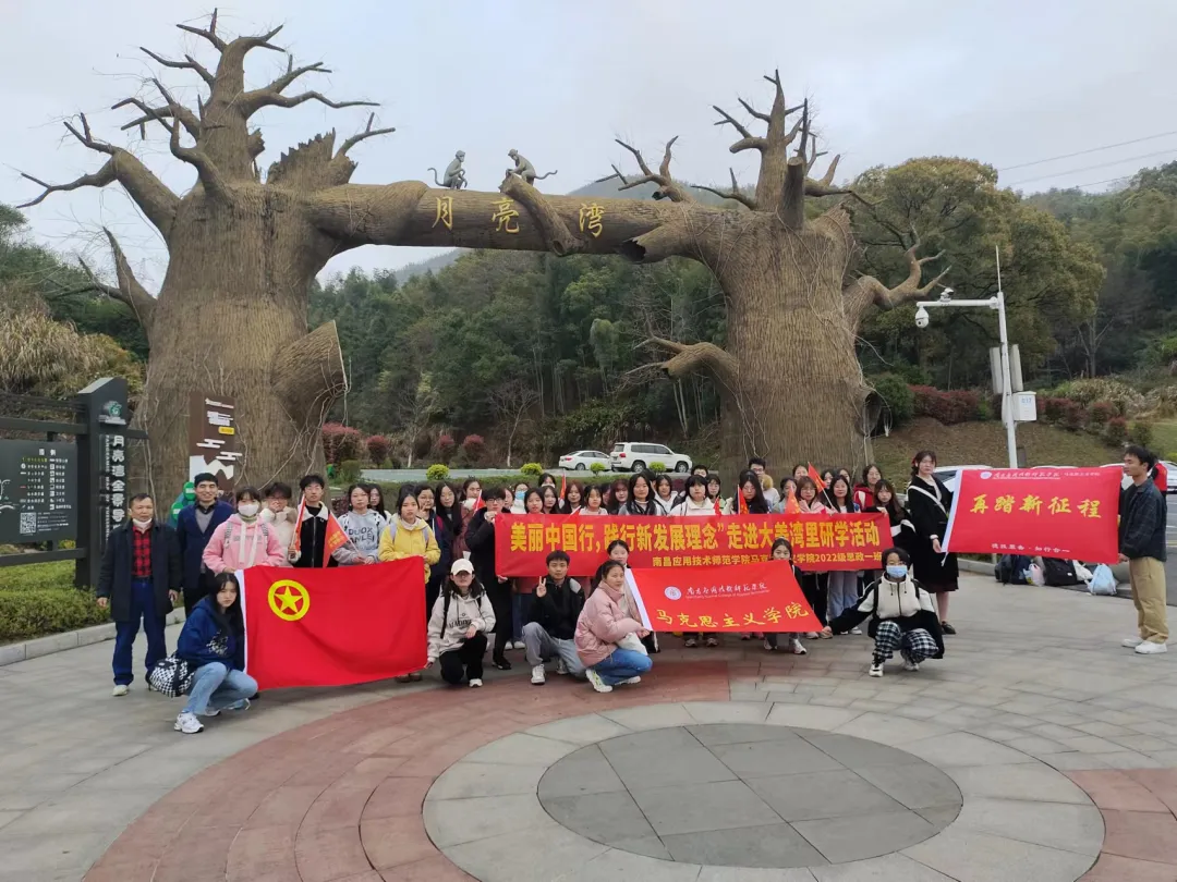红船荡漾,星火燎原,红色研学正当时。为贯彻“弘扬伟大建党精神,自信自强,守正创新”的二十大理念,学习和践行“踔厉奋发,勇毅前行”的二十大精神,3月25日,马克思主义学院红色班级——“砥砺前行班”思政一班46人在班主任卢林保老师的带领下前往大美湾里举办了以“美丽中国行,践行‘新发展理念’”为主题的红色研学活动,为提升此次研学活动的专业性,特别邀请江西中医药大学周世新教授和省内知名企业家夏雷先生参与指导。在此次活动中,同学们深入了解“德技兼备,知行合一”的校训,践行“不忘初心、牢记使命”的革命理念,发扬革命精神,传承红色基因,在未来的日子里艰苦奋自强不息。