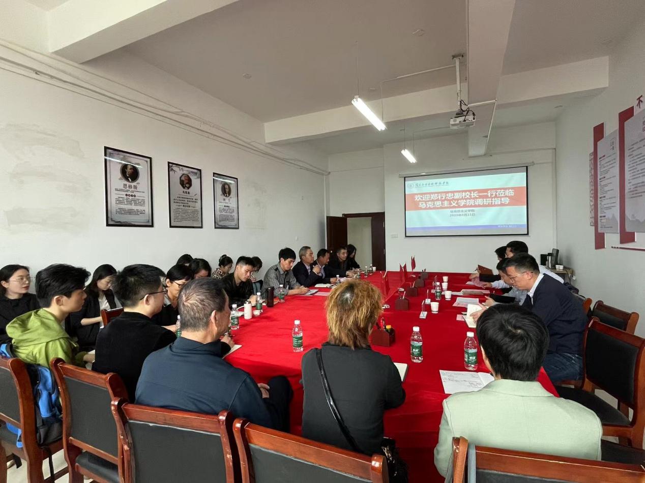为深入了解基层教学组织的建设情况,切实推进马克思主义学院高质量发展,4月11日上午9:00,副校长郑行忠带队赴马克思主义学院调研指导学院建设发展工作。学校教学科研工作部部长、人力资源部副部长、宣传部副部长等职能部门负责人,马克思主义学院全体院领导及教职工代表参加会议,会议由学院院长主持。