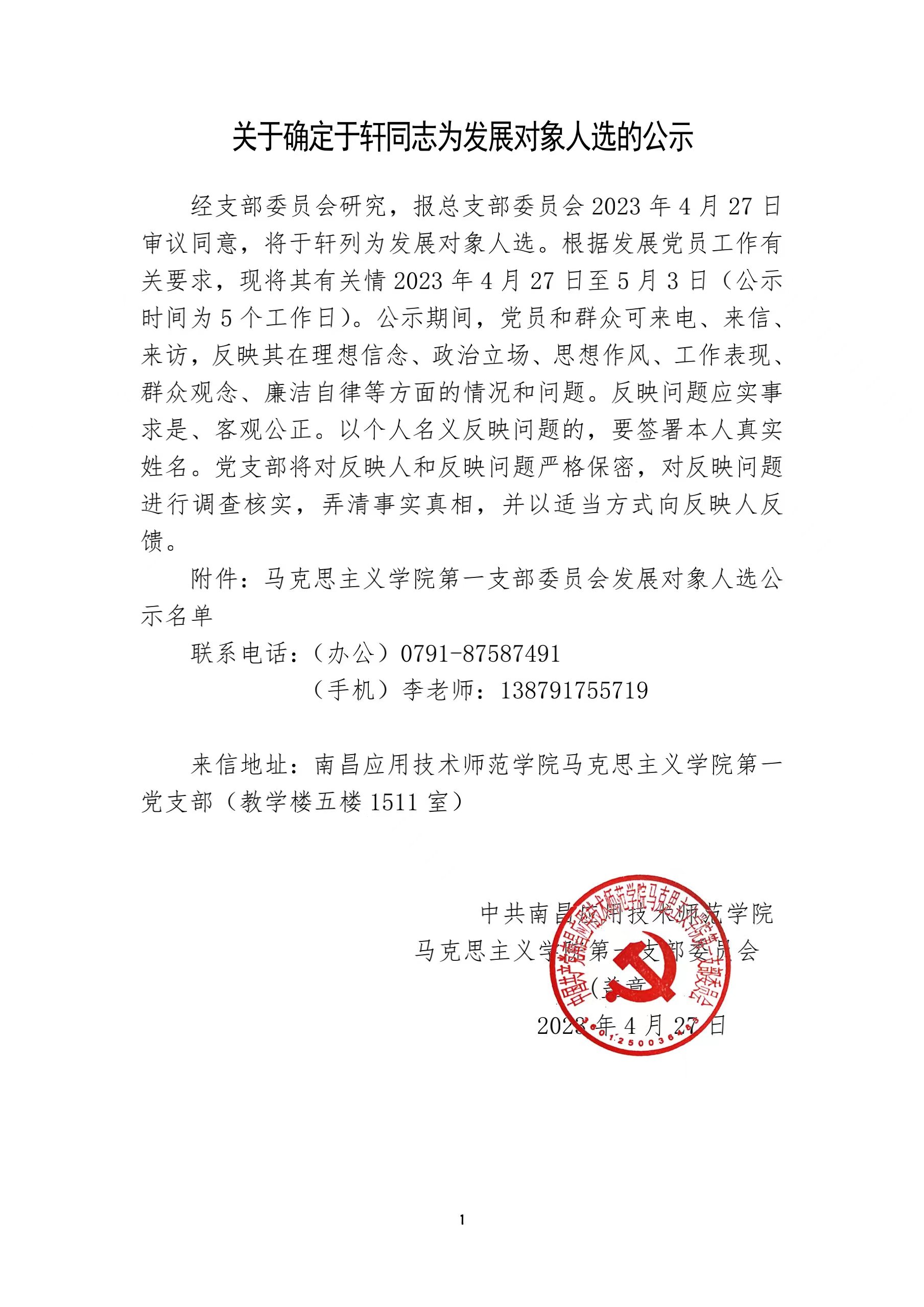 首页栏目 通知公告 学院新闻 习近平思想学习专栏 主题教育学习 院长书记信箱 您现在的位置是:首页 > 首页栏目 > 通知公告 关于确定于轩同志为发展对象人选的公示 管理员2023-04-296520 上一篇 关于确定刘洋等3位同志为发展对象人选的公示 下一篇 马克思主义学院第一支部委员会入党积极分子备案名单