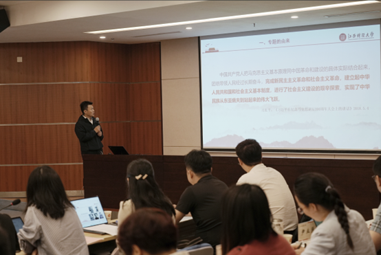 大会开始,江西财经大学马克思主义学院副院长李德满对“社会主义革命和建设的开展”专题授课大纲进行了讲解,并以社会主义工商业改造为例重点展示了教学中采用的数据资料和案例。在简短的展示之后,大会进入专家点评阶段。来自天津师范大学的资深教师李朝阳教授进行了点评,认为李德满老师的授课具有思路清晰、史料丰富、备课充分等优点,但仍存在问题式教学的问题不够突出,不够有针对性的不足。随后,大会进入自由讨论时间,来自不同院校的十多位老师都发表了自己的见解,beat365公共政治理论课教研室负责人发表了以“基础工业在日常生活中无处不在”为主题的学习心得。