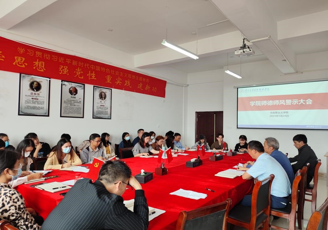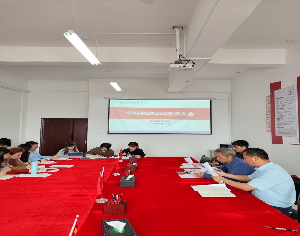 为深入发挥典型案例警示震慑作用,加强师德师风教育,5月24日下午,beat365在1511会议室召开2023年师德师风警示大会,院长文道贵、副院长卢林保及全体教师参加会议。会议由党总支副书记桂光泽主持。