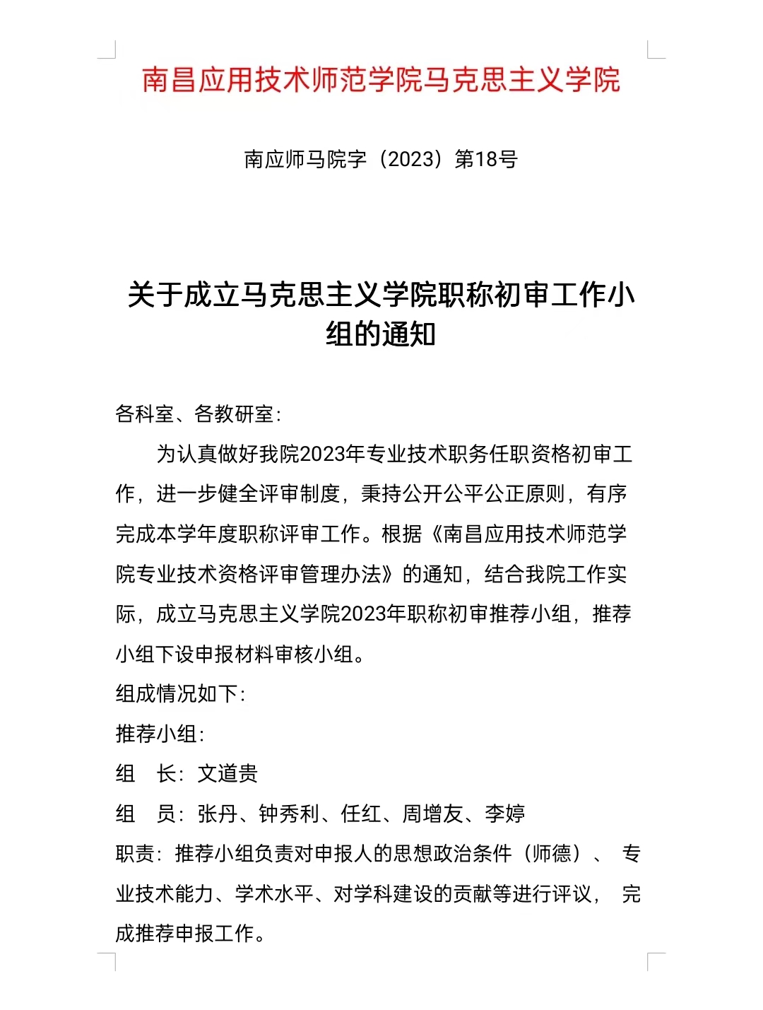 首页栏目 通知公告 学院新闻 习近平思想学习专栏 主题教育学习 院长书记信箱 您现在的位置是:首页 > 首页栏目 > 通知公告 关于成立马克思主义学院职称初审工作小组的通知 管理员2023-06-156252 上一篇 马克思主义学院获2023级新生军训和迎新工作表彰名单 下一篇 关于确定刘洋等3位同志为发展对象人选的公示