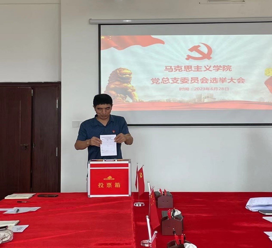 以新起点开启新征程,为深入学习贯彻习近平总书记关于加强党的基层组织建设的重要指示精神,进一步创新学院党支部工作,提高党支部战斗力,2023年6月28日下午14:30,经校党委批复同意,马克思主义学院党总支委员会选举大会在教学楼1511党员活动室举行,会议由党总支书记文道贵同志主持。