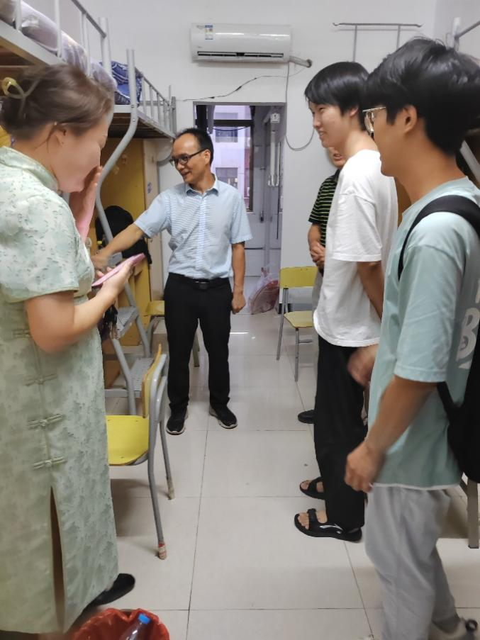 通过走访宿舍听取学生心声,学校领导和老师们进一步了解了学生的报到情况以及实际生活需求,拉近了和同学们的距离,打通了师生心灵同频共振的渠道。