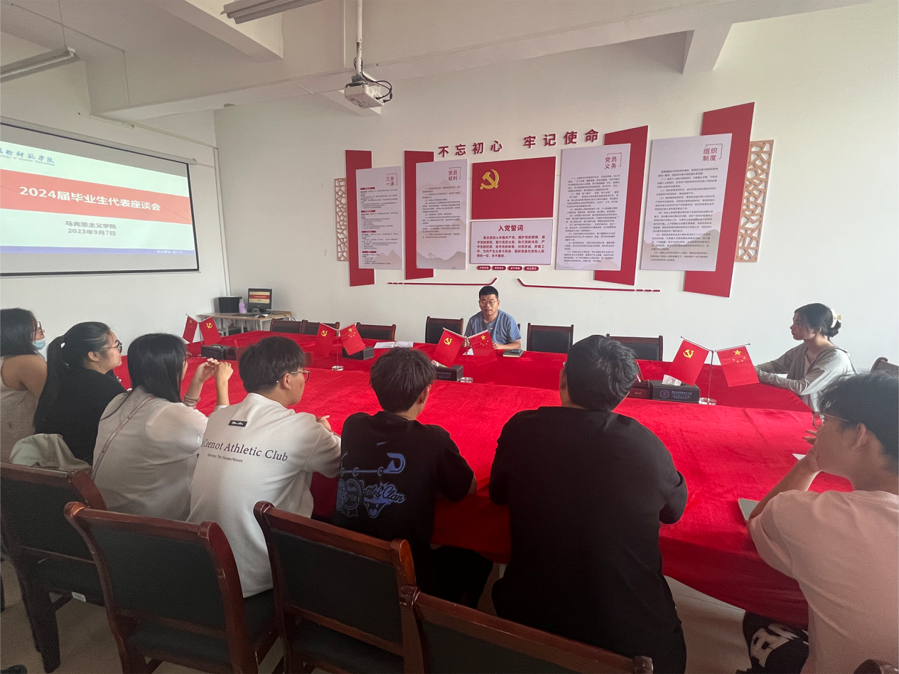 为做好马克思主义学院2024届毕业生就业工作,2023年9月7日上午,马克思主义学院在1511会议室召开24届毕业生就业工作座谈会,学工管理科负责人康柠、学院2024届毕业生代表参加座谈,会议由学院党总支书记张欣康主持。