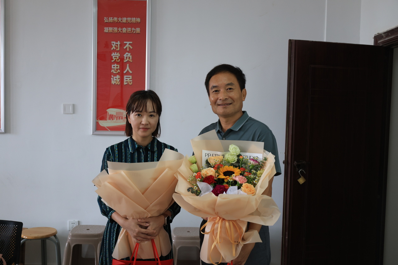教师节前夕,校领导走访慰问在学校教育教学工作中,取得突出业绩的优秀教工及困难教职工,并送上一捧鲜花及节日大礼包,以感谢他们铭记教书育人使命,甘为人梯,主动当好“铺路石”和领路人,为学校办好人民满意的教育所做出的突出贡献。