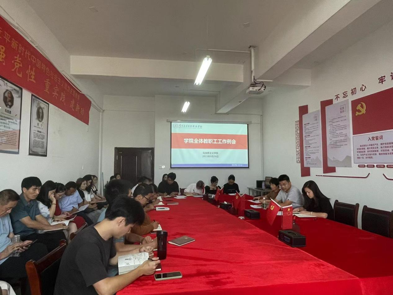 9月26日下午,学院在1511会议室召开全体教职工工作例会,学院党总支书记张欣康、党总支副书记李婷、副院长张丹及全体教职工参加会议,会议由张欣康主持。