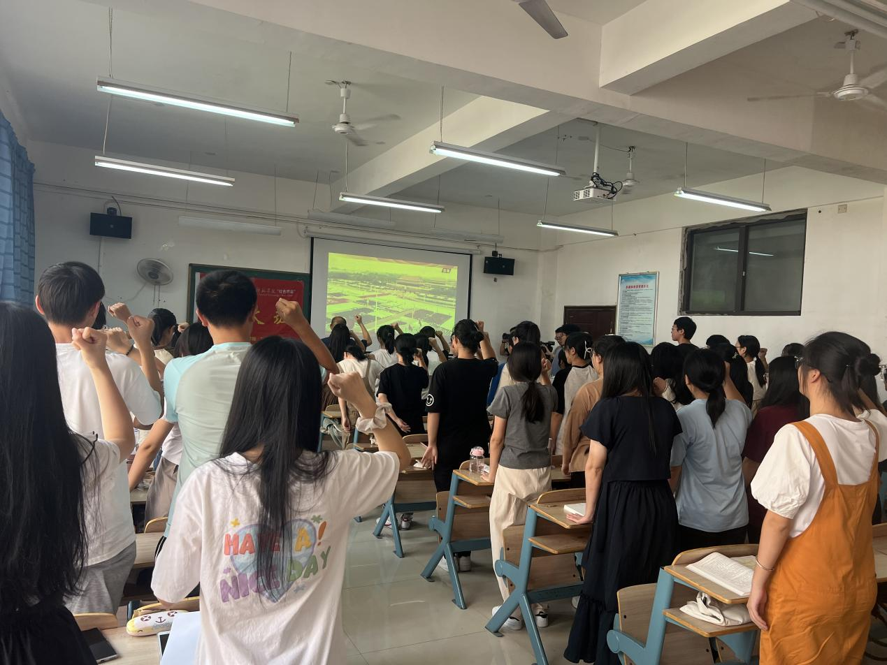 活动最后,周根保司令员与大家一同回看了中国共产党成立100周年庆祝大会视频,在周根保司令员的带领下,全体听众一同举起右手,大声宣誓:“请党放心,强国有我”,洪亮的声音在教室与同学心中回荡。
