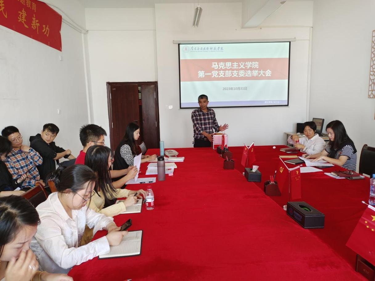 以新起点开启新征程,为深入学习贯彻习近平总书记关于加强党的基层组织建设的重要指示精神,进一步创新学院党支部工作,提高党支部战斗力,2023年10月31日下午经院党总支批复同意,马克思主义学院第一支部委员会选举大会在教学楼1511党员活动室举行,会议由李婷同志主持。