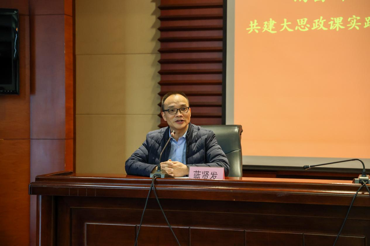蓝贤发介绍了学校基本情况和办学特色,并指出挂牌设立“大思政课”实践教学基地,是学校深入贯彻落实习近平总书记关于“大思政课”重要指示批示精神的具体实践,是学校落实立德树人根本任务,进一步传承红色基因,赓续红色血脉的重要举措。希望未来双方互相交流学习,在大学师生开展社会实践活动、开发特色优质教学资源、优化“大思政”课程师资、合作开展科研等方面进行深度合作,共同铸魂育人,培养合格的社会主义建设者和接班人。