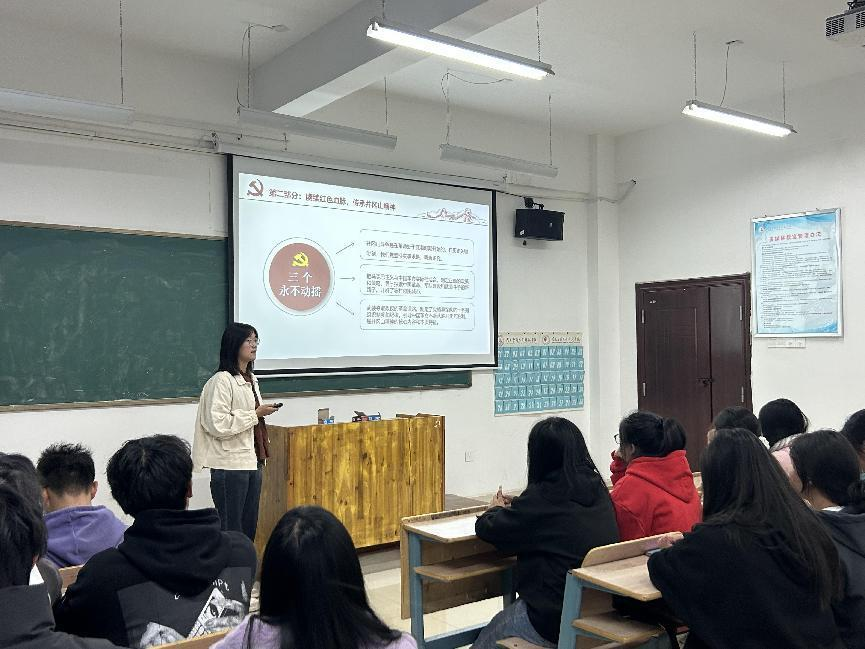 本次宣讲活动共覆盖25个新生班级,分享人数达1188人。星火实践队成员面向自身所在的班级,围绕三天两晚的井冈山之行,向班上同学分享此次研学活动的所思所想所感,向同学们宣讲井冈山斗争史及井冈山精神,进一步弘扬传承井冈山精神,坚定理想信念,不忘初心牢记使命。