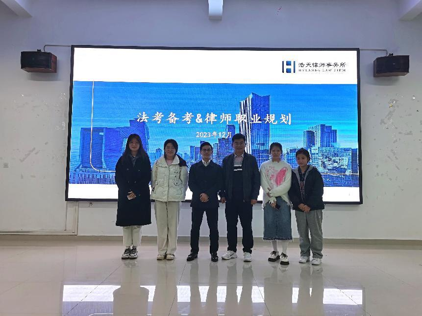 2023年12月14日18:00,马克思主义学院于教学楼2311教室举行了法考知识及律师职业规划讲座。此次讲座由党总支书记张欣康主持,浩天律师事务所谢泽楷律师主讲,beat365法学专业200余名学生参加本次讲座。
