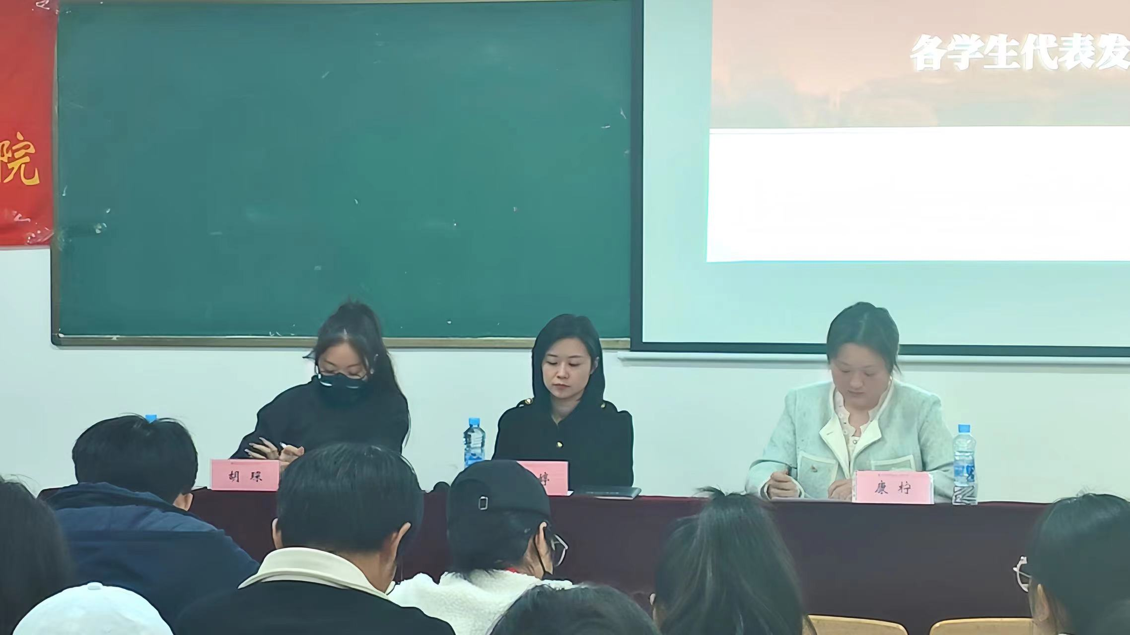 伴随着激昂的国歌旋律,新生干部培训班开班仪式在庄严而热烈的氛围中拉开帷幕。首先,由各部门代表进行发言。他们对自身岗位的工作内容进行了总结并分享了自己在学生工作中积累的经验和心得,鼓励同学们在培训中相互学习、共同进步。随后,马克思主义学院党总支副书记李婷发表讲话。她强调,学生干部是学院与同学之间的桥梁,是推动学院各项活动顺利进行的重要力量,她提出“风”、“日”、“思”、“团”四个方面的要求,希望各位学生骨干在学风、班风、校风建设中发挥模范带头作用;在日常管理中起桥梁细带作用;在思想教育中发挥助手作用;加强团队意识。最后,全体参会人员齐唱中国共青团团歌。至此,开班仪式圆满结束。