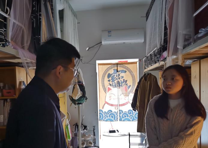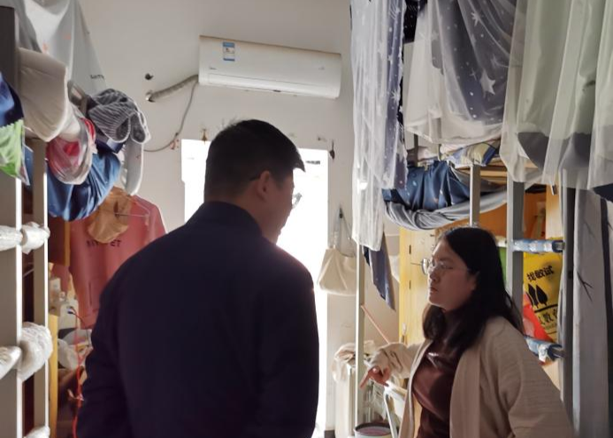 2024年3月19日上午,马克思主义学院党总支书记张欣康、副书记李婷及毕业班辅导员走访毕业生宿舍,与学生深入交流,了解学生在校期间生活、学习情况及实习、就业情况。