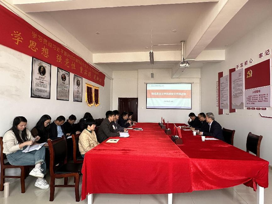 2024年3月19日,马克思主义学院在1511会议室召开就业工作推进会。校党委副书记蓝贤发、马院党总支书记张欣康、副书记李婷出席会议,法学教研室主任、各论文实习指导老师及毕业班辅导员参加会议,会议由院长文道贵主持。