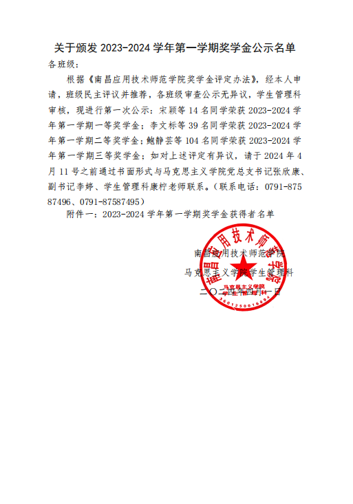 首页栏目 通知公告 学院新闻 习近平思想学习专栏 主题教育学习 院长书记信箱 您现在的位置是:首页 > 首页栏目 > 通知公告 2023-2024学年第一学期奖学金公示名单 管理员2024-04-015773 上一篇 关于确定胡琛为2024 年度宣传思想文化工作 “先进个人”的公示 下一篇 beat365英国官方网站2023-2024年学年教师招聘启事
