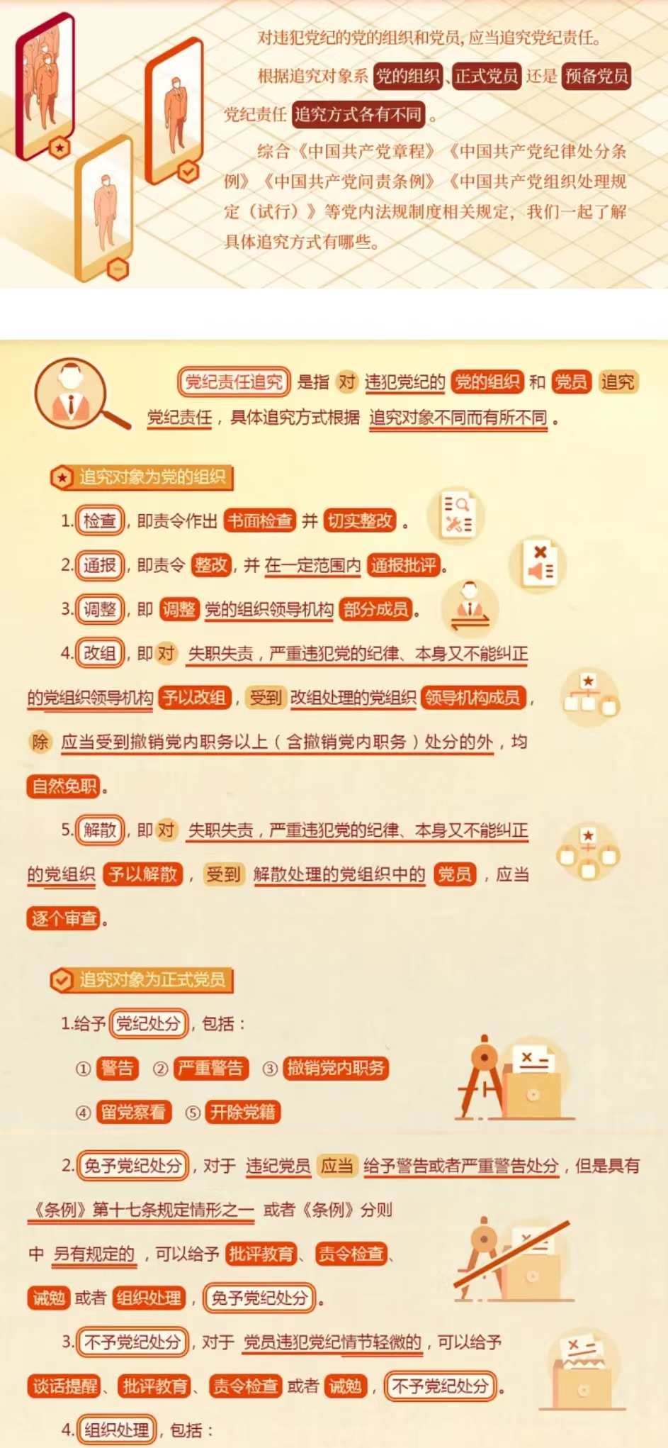 base 首页栏目 学院概况 教学管理 教师教学 学科专业 党建活动 学团建设 招生就业 先进典型 专题专栏 媒体聚焦 文件下载 您现在的位置是:首页 > base > 专题专栏 党纪学习教育|党纪责任追究对象方式一览 管理员2024-05-014668 上一篇 党纪学习教育|第10课对违法犯罪党员的处分规定 下一篇 党纪学习教育第9课:《条例》修订重点条文解读要清楚