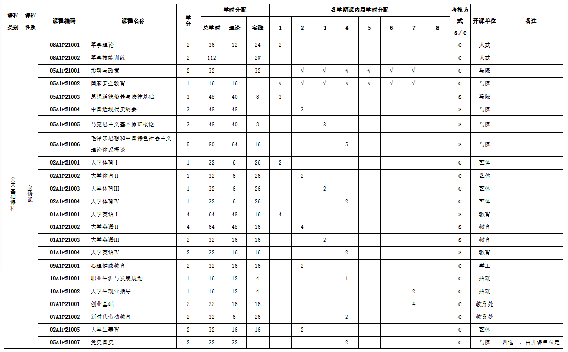 表三:课程设置及教学进程安排表