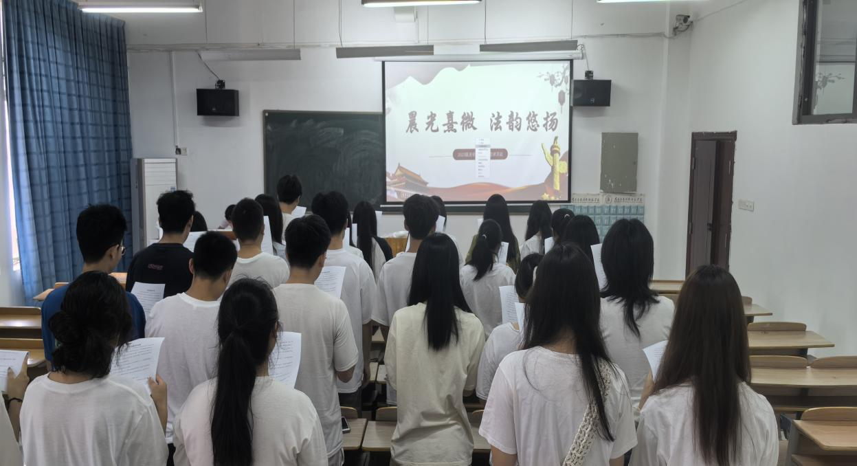 为了深入开展宪法法律学习宣传教育,推动学生宪法学习宣传教育走深走实,引导学生自觉成为宪法的忠实崇尚者、自觉遵守者、坚定捍卫者。马克思主义学院23级法学1班于2024年5月21日上午9:00在2501教室组织开展了“晨光熹微,法韵悠扬”宪法晨读活动,此次活动由23级法学1班全体同学及老师共同参与。