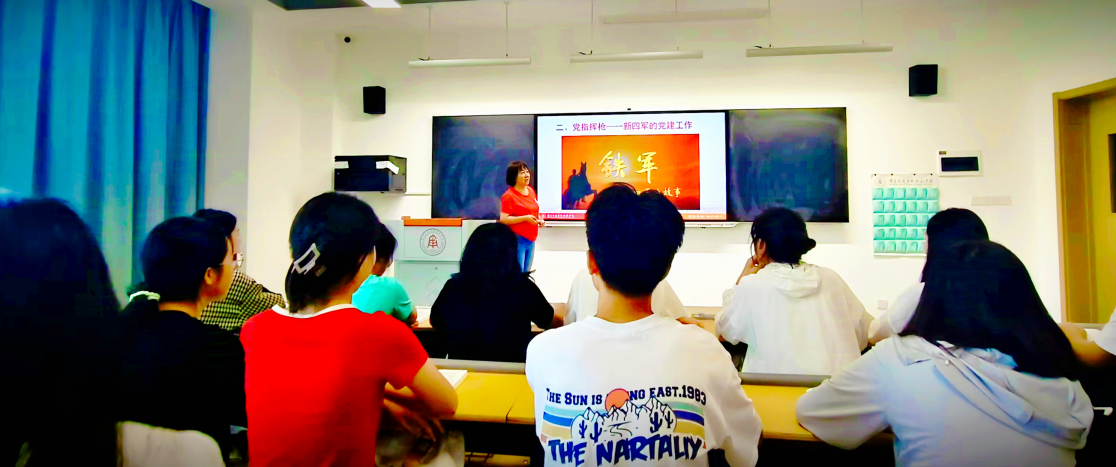 伴随着雄壮的新四军军歌,beat365英国官方网站马克思主义学院与南昌新四军军部旧址陈列馆联合开发的校本特色大思政课《新四军抗日斗争史》第二专题“党指挥枪--新四军的党建工作”于9月27日在赣新校区沁苑2教A座A204正式开讲。第一讲:铁军精神,本次课程采取“双师同堂”和“一线课堂”等多种教学创新形式展开,课堂主讲为马克思主义学院思政系王敬平教授、课堂助讲和一线课堂为石仁凤老师担任。