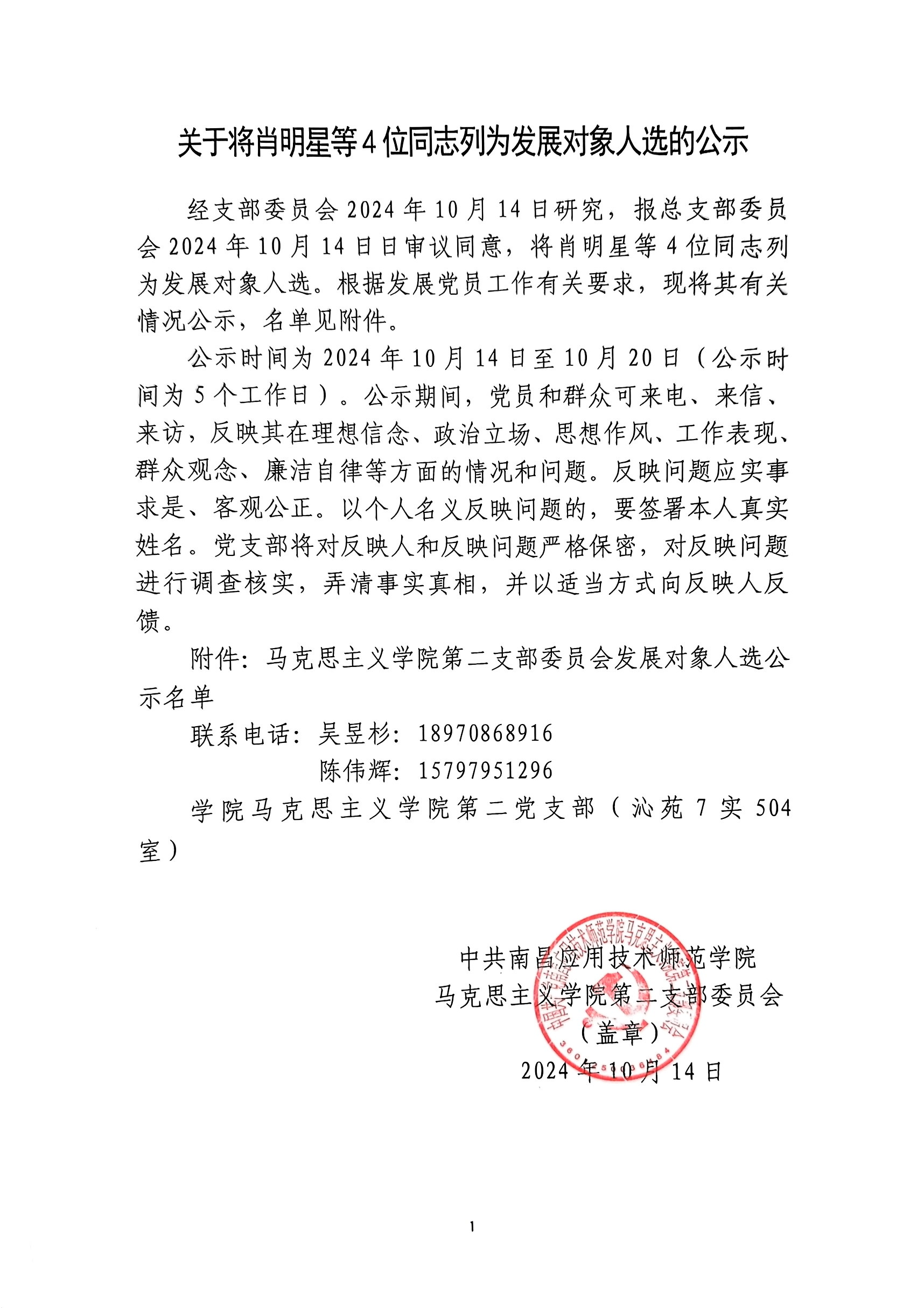 党建活动 组织发展 党总支概况 党建工作 您现在的位置是:首页 > 党建活动 > 党建工作 关于将肖明星等4位同志列为发展对象人选的公示 管理员2024-10-141606 上一篇 关于确定李宏鑫、康柠同志列为发展对象人选的公示 下一篇 马克思主义学院第一党支部开展 《中国共产党不合格党员组织处置办法》 专题党课