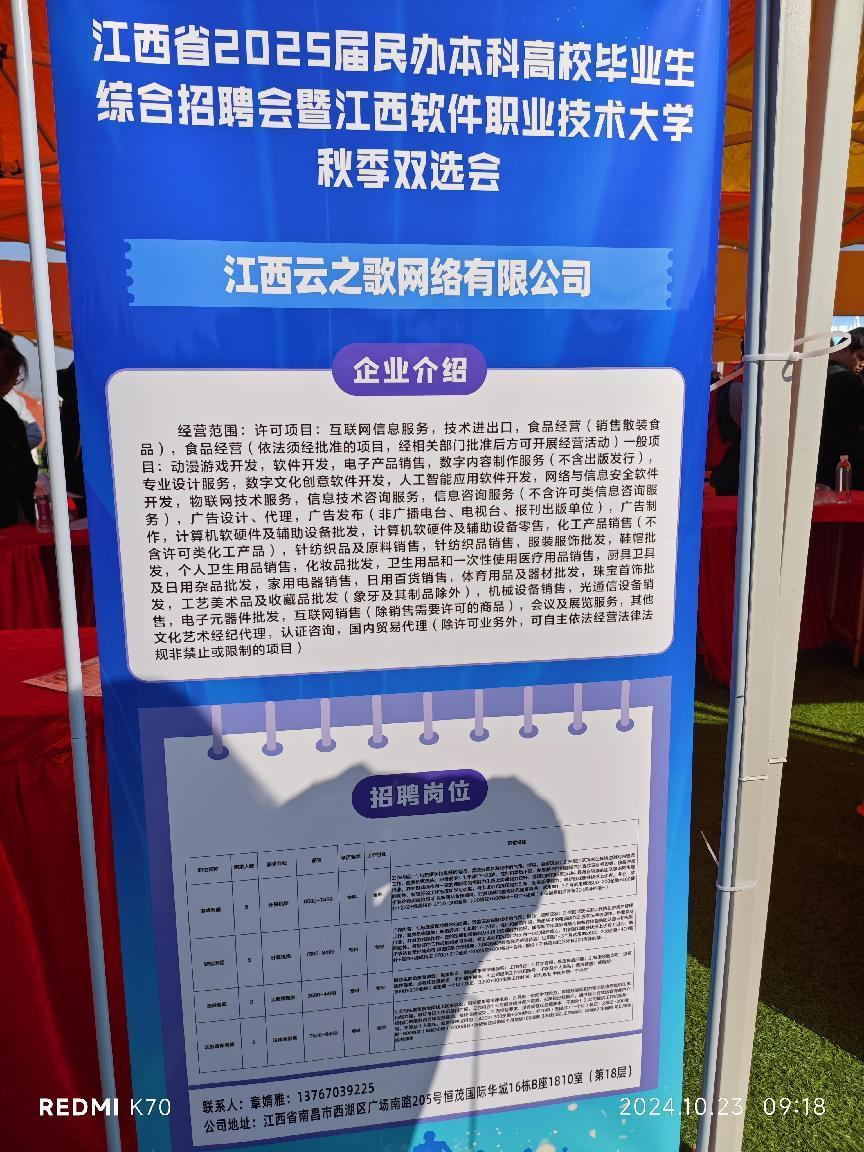 为进一步加强校企合作,拓宽毕业生就业渠道,提升人才培养质量,实现更全面更高质量就业。10月23日上午,马克思主义学院就业专员朱文清,前往江西软件职业技术大学招聘会现场进行访企拓岗工作。