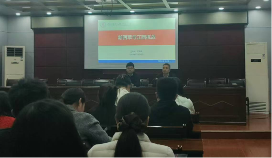 晚上,党总支组织党员们集体过组织生活。院长文道贵结合白天的实地学习,为大家作了《新四军与江西抗战》的辅导报告。报告从三个方面对新四军在江西的抗日斗争进行了系统概括,高度肯定了江西人民为抗日斗争胜利作出的伟大贡献。随后,同志们围绕今天的党日活动进行学习研讨。党总支书记张欣康强调,皖浙赣边三年游击战,谱写了中国共产党人矢志信仰、坚强不屈,并与人民群众血肉相连的红色传奇。新四军瑶里整编,则是皖赣边区革命斗争,走向辉煌的一座永恒丰碑。通过此次参观学习,我们要认真学习先辈们对革命前途充满信心,依靠群众,英勇顽强,不屈不挠,始终保持革命的乐观主义精神。