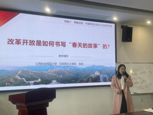 接着,省级教学成果奖获得者、江西科技师范大学马院张丽博士、青年教师郑青青分别以“改革开放是如何书写“春天的故事”的?”、“网络生活中的道德要求”为题讲授示范课。两位来访青年教师在备课准备、教学组织、AI技术手段融入课堂等环节,通过诗意的语言为我们生动地讲述了《习近平新时代中国特色社会主义思想概论》《思想道德修养与法治》精彩片段,通过主题讨论、数据分析、随堂训练、与人工智能对话等多种教学手段,为beat365老师带来了一场充满互动与创新的课堂体验。