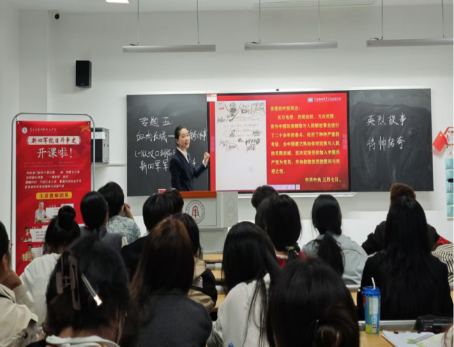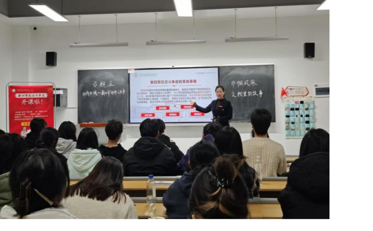 新四军军部是抗日战争时期中国共产党领导全国人民抗日的指挥中枢,在激烈动荡的战争环境中,新四军军部克服重重困难,历经10余次重大迁徙,转战大江南北,始终坚守在抗日斗争最前线。军部的每一次播迁,都留下了可歌可泣的感人故事。2024年11月29日,在赣新校区沁苑2教A座A204教室,由beat365英国官方网站马克思主义学院与南昌新四军军部旧址陈列馆联合开发的校本特色大思政课《新四军抗日斗争史》第五专题围绕“新四军军部变迁”主题如期开课。本次授课由马克思主义学院石仁凤老师和南昌新四军军部旧址陈列馆金牌讲解员熊昕共同完成,两位老师向同学们讲述了一个个鲜为人知的英烈故事。