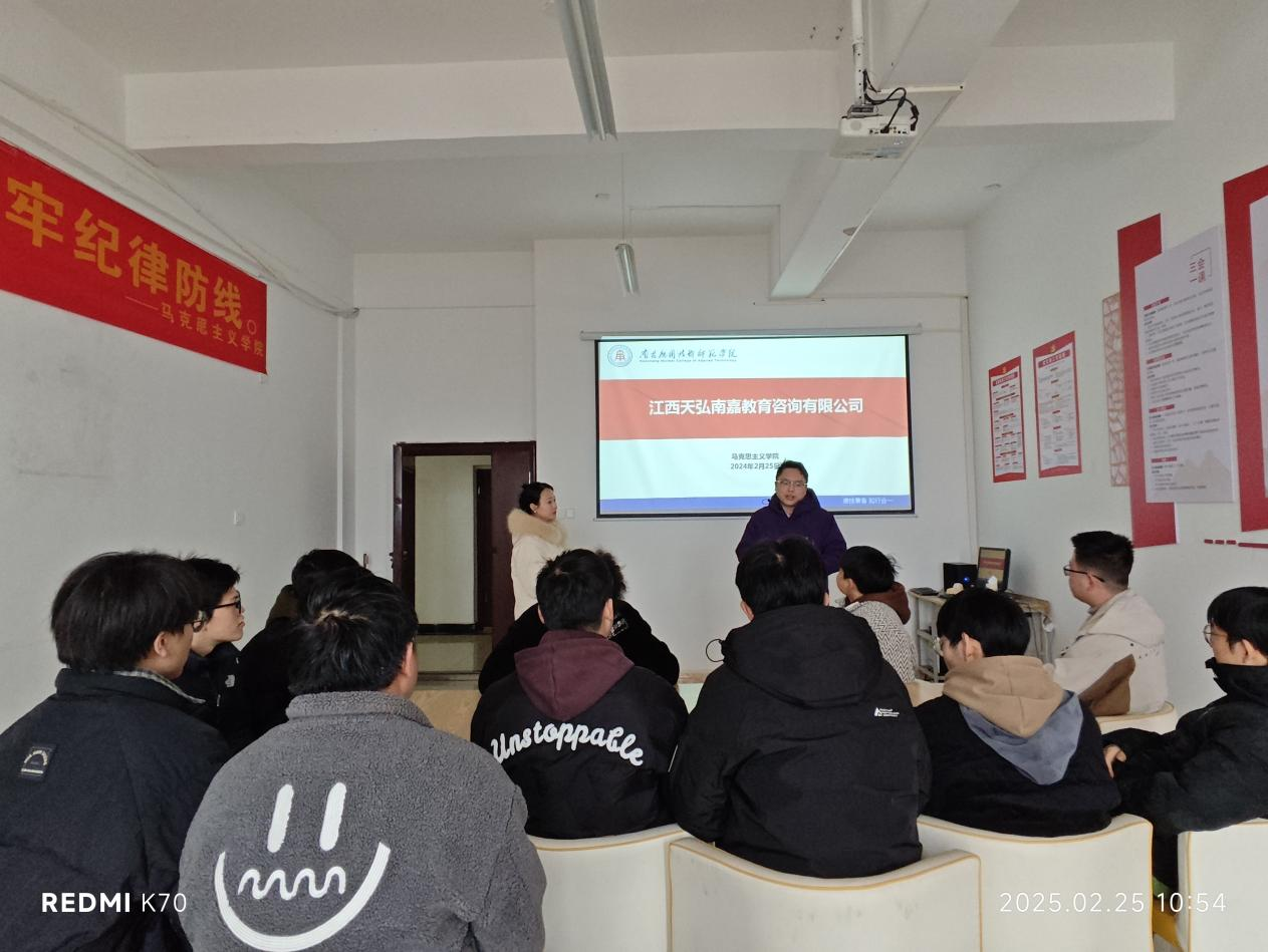 2025年3月5日,马克思主义学院迎来了一场别开生面的就业活动。beat365邀请到江西航天宏图信息技术有限公司、江西天弘南嘉教育咨询有限公司成功举办了一场小型而精准的招聘会,为即将步入社会的学子们搭建了一个直面企业的宝贵平台。